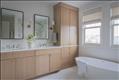 Ascend the staircase to the second level, where the luxurious primary bedroom suite awaits to your left. This suite includes a walk-in closet, two additional closets, a spacious en suite bathroom with dual vanities, a shower enclosure with a bench, and a freestanding soaking tub. Straight ahead and to the right, you'll find two more well-appointed bedrooms, each with its own en suite bathroom, offering comfort and privacy for family or guests.